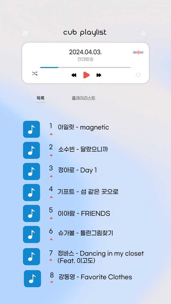현재위치 홈 AUDIO 광주 캠퍼스 최수연 PD csuyeon7@naver.com 입력 2024.04.03 14:38 바로가기 복사하기 다른 공유 찾기 기사저장 글씨크기 본문 글씨 키우기 본문 글씨 줄이기 이 기사를 공유합니다 페이스북(으)로 기사보내기 트위터(으)로 기사보내기 URL복사(으)로 기사보내기 닫기