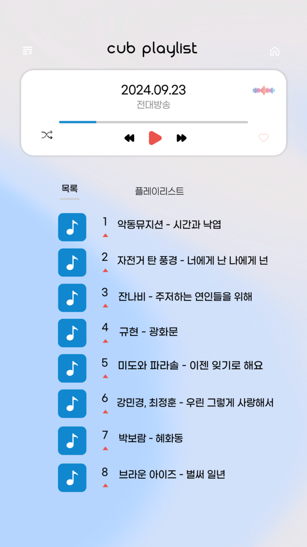 현재위치 홈 AUDIO 광주 캠퍼스 김예린 PD gyelin7@gmail.com 입력 2024.12.13 07:46 바로가기 복사하기 다른 공유 찾기 기사저장 글씨크기 본문 글씨 키우기 본문 글씨 줄이기 이 기사를 공유합니다 페이스북(으)로 기사보내기 트위터(으)로 기사보내기 URL복사(으)로 기사보내기 닫기