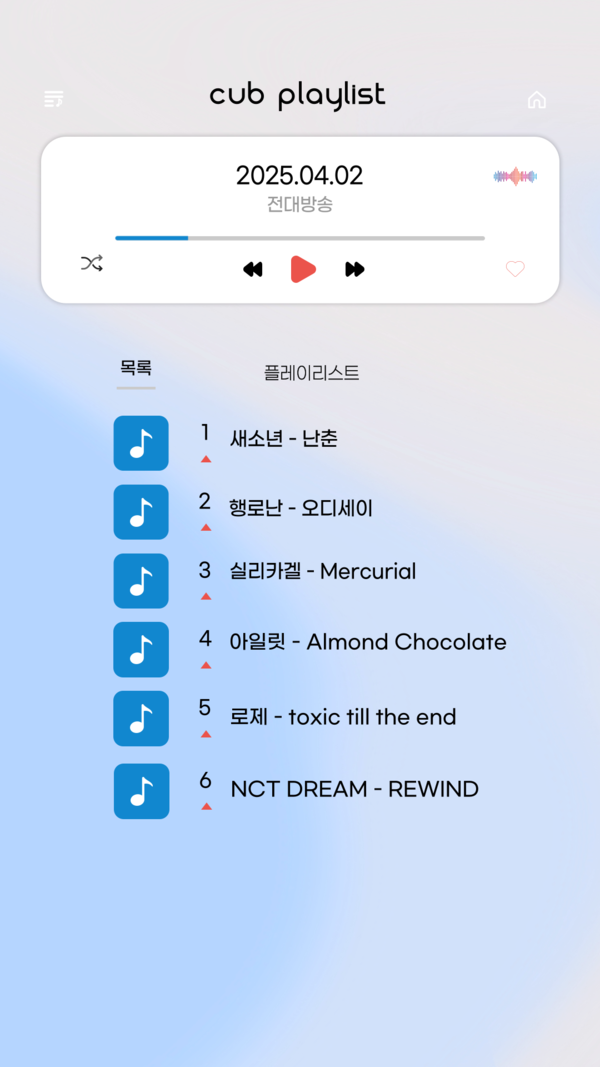 현재위치 홈 AUDIO 광주 캠퍼스 김시윤 PD sheyun0130@naver.com 입력 2025.04.03 16:44 바로가기 복사하기 다른 공유 찾기 기사저장 글씨크기 본문 글씨 키우기 본문 글씨 줄이기 이 기사를 공유합니다 페이스북(으)로 기사보내기 트위터(으)로 기사보내기 URL복사(으)로 기사보내기 닫기